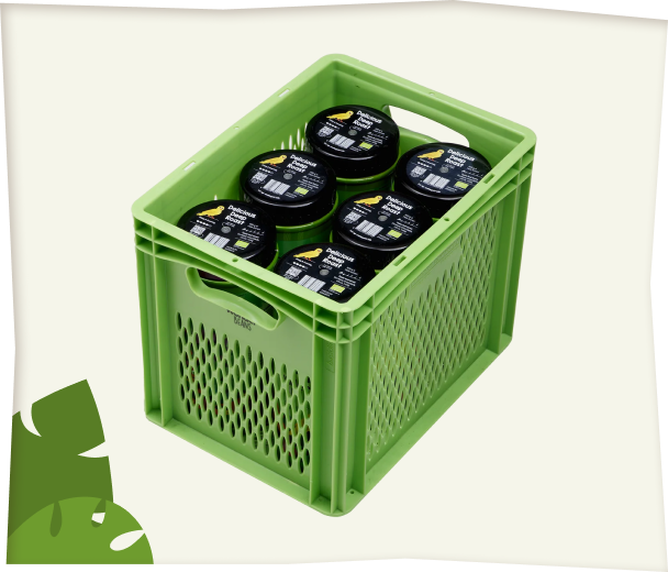 Bij onze blikken werken we met statiegeld op twee onderdelen: elk afzonderlijk blik én het herbruikbare krat van 6 stuks. Je ziet dit in de checkout als aparte regels en rekent het direct mee met je bestelling. Zodra we bij je volgende levering de lege blikken en het krat verwerken, verrekenen we het statiegeld handmatig via onze administratie. Zo houden we samen de keten schoon, circulair en transparant.
